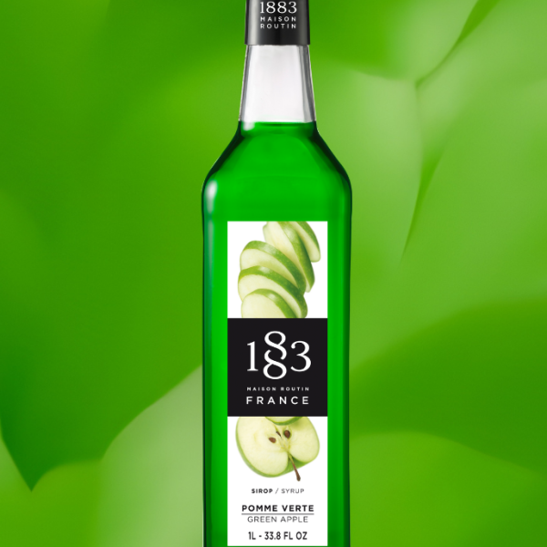 Syrup 1883 Táo Xanh (Green Apple) mang hương vị đậm đà, tươi mát với độ chua mạnh mẽ và hậu vị giòn tan, mọng nước. Sản phẩm chính hãng Pháp, 100% đường mía tự nhiên, hoàn hảo cho Soda, Mojito và Trà trái cây.